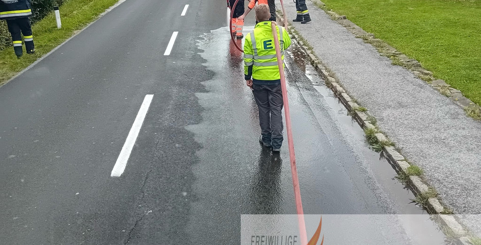 Unverzüglich rückten wir mit dem TLFA Södingberg und 6 Mann zum Einsatzort aus. Die Güllespur erstreckte sich über mehrere Kilometer – vom Bereich Mühlhuber bis zum Ortskern Stallhofen. Gemeinsam mit der FF Stallhofen wurde die Fahrbahn mittels HD-Rohr und unter Einsatz beider Tanklöschfahrzeuge gründlich gereinigt.